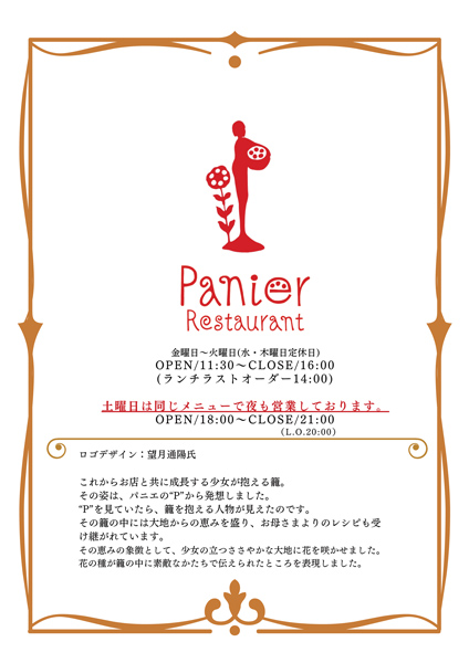 レストランの語源は「その人本来の姿に回復する、元気にする」という意味だそうです。パニエに来てくださる方々にとって、そのような役割でありたいと願っています。